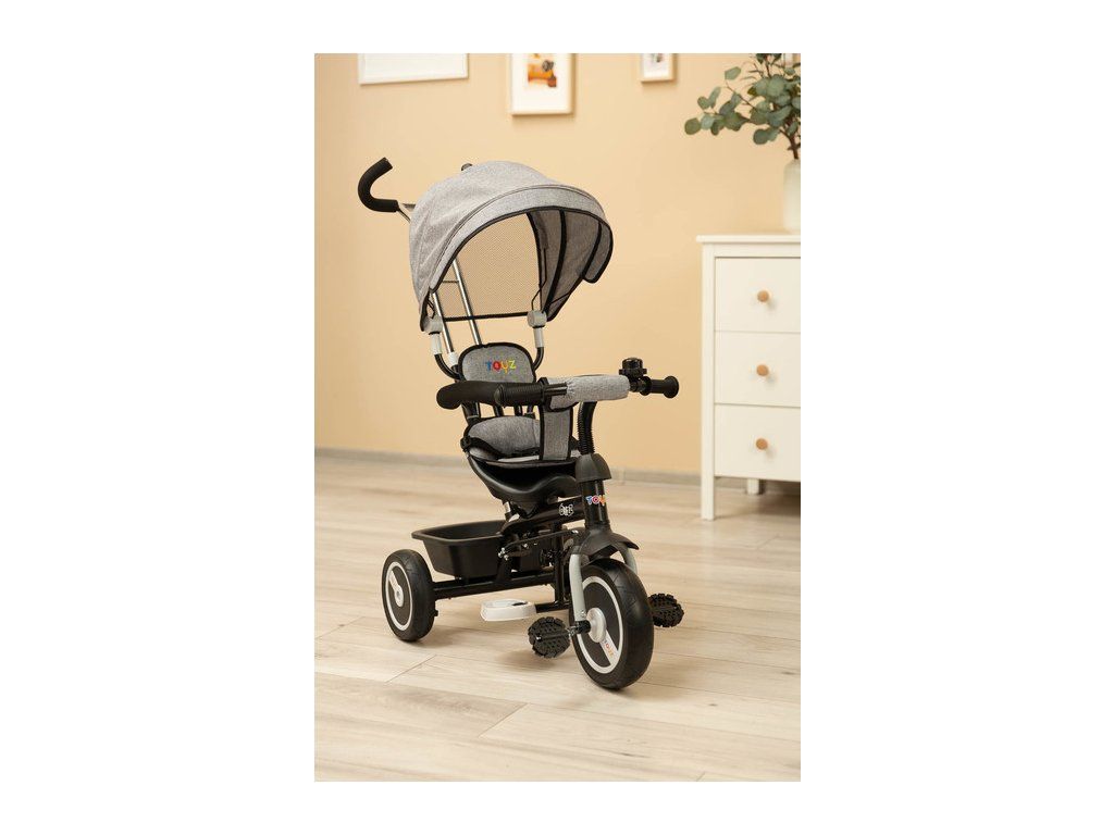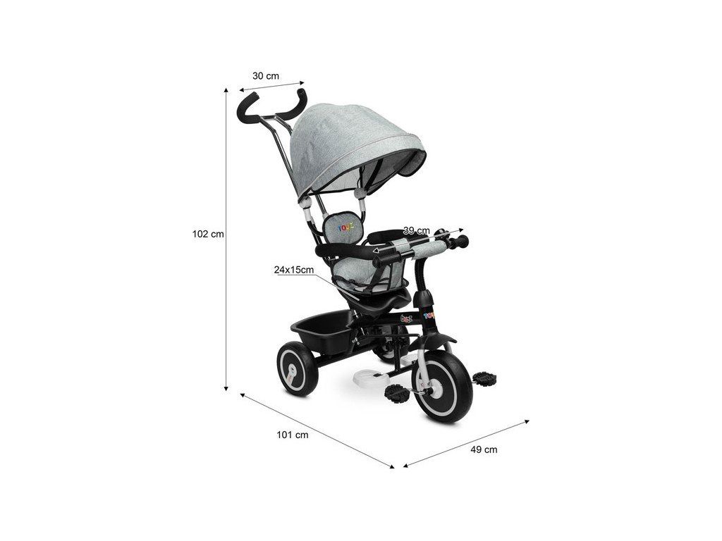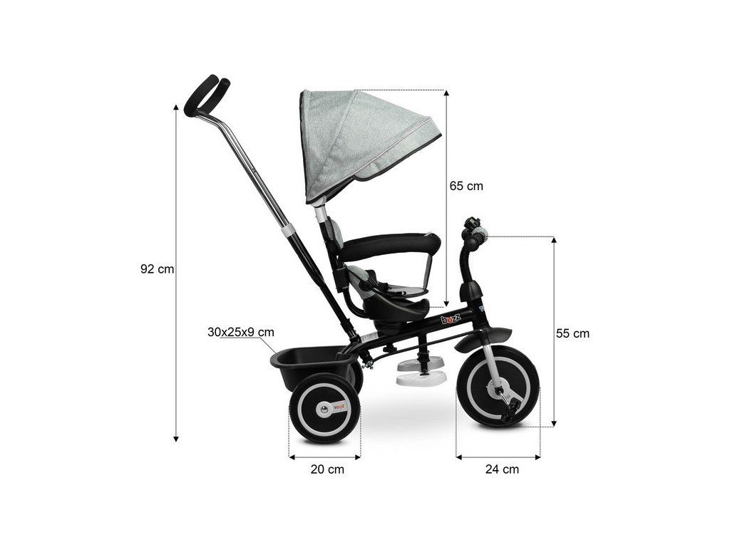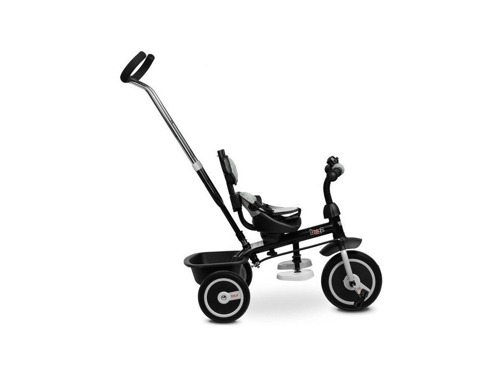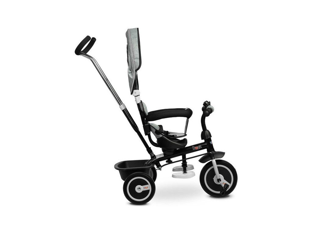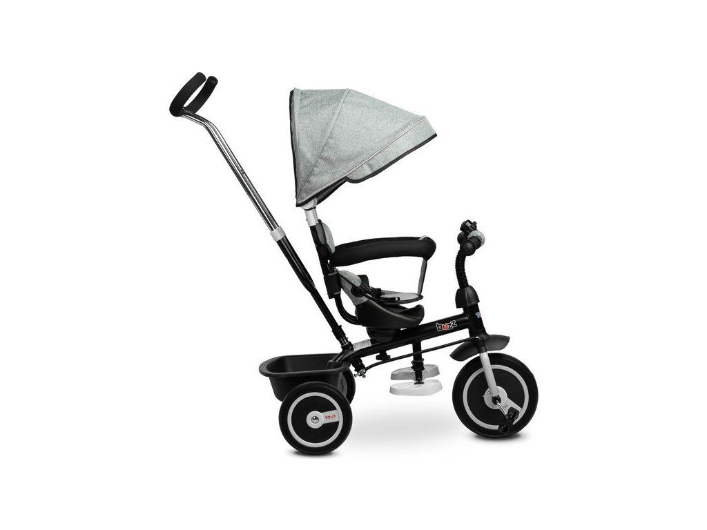 Kolo BUZZ je jedním z našich mnoha inovativních řešení, které kombinuje tříkolku s kočárkem. Kolo je vybaveno pásy a velkou skládací stříškou, která chrání batole před sluncem . Košík umístěný vzadu lze využít k uložení různých drobností a hraček batolete nebo nákupní tašky. Kolo má 3-stupňové výškové nastavení stupačky a volnoběžku. Pro rodiče je pohodlím nastavitelná výška rukojeti.