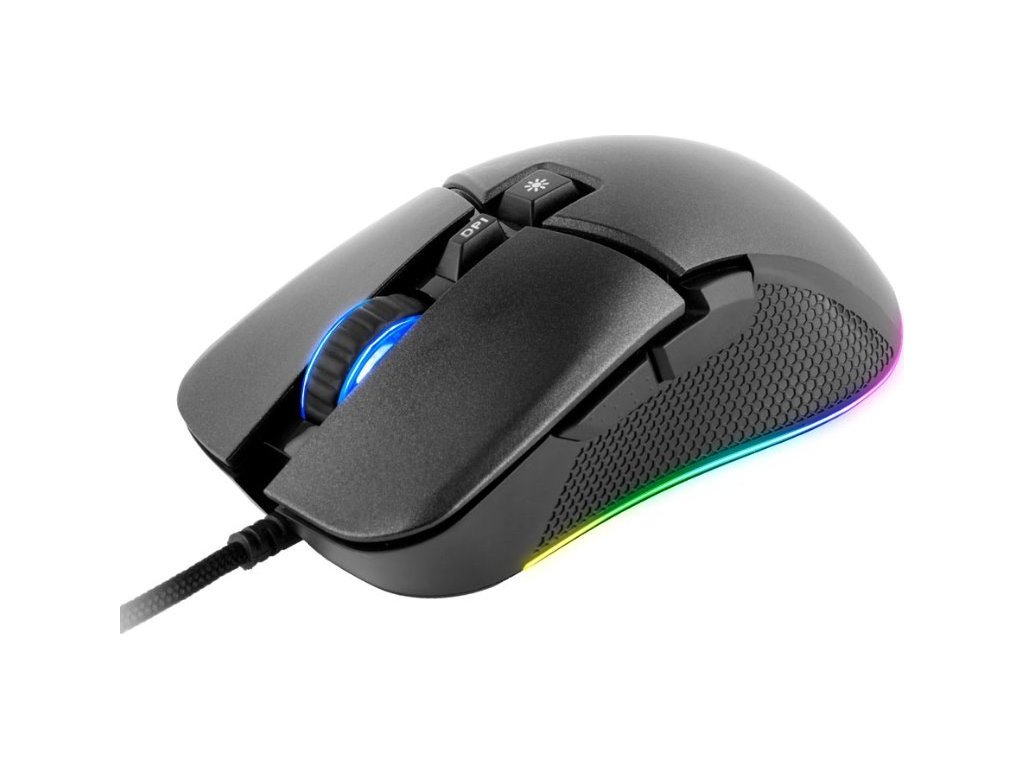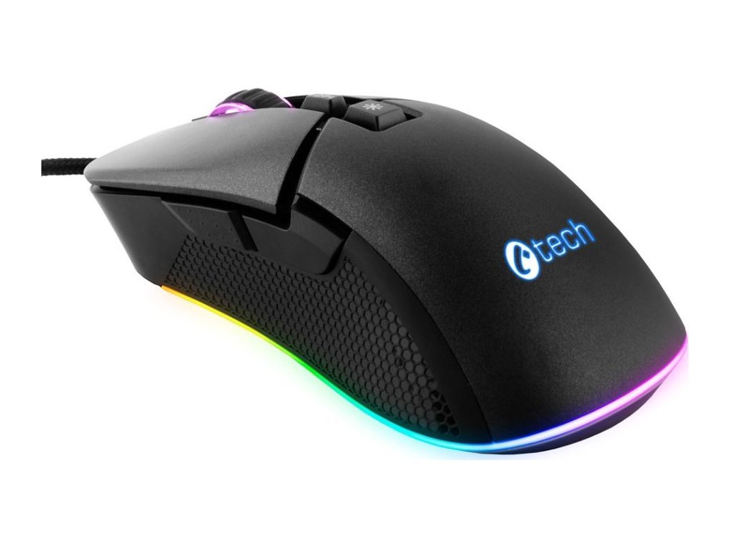 Herní myš C-TECH Dawn Vás na první pohled okouzlí svým elegantním tvarem a RGB podsvětlením. Myš disponuje optickým snímačem Sunplus 199 s maximálním rozlišením 6400DPI, které je možno pomocí tlačítka DPI měnit v 5 úrovních. Myš je vybavena 5 tlačítky, které vám poskytnou dokonalou kontrolu nad hrou. Další dvě tlačítka jsou pro změnu DPI a volbu RGB režimu podsvětlení. 5 RGB módy s 16.8 miliony barev oživí váš stůl nejen při hraní her, ale i při kancelářské práci. Myš C-tech Dawn je díky své ergonomii vhodná pro praváky a k počítači ji připojíte 1,5m opleteným kabelem s USB konektorem.