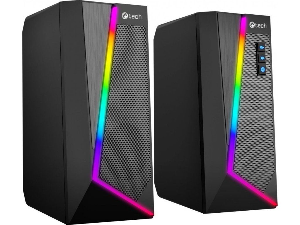Stolní PC reproduktory C-tech SPK-17 s elegantním designem a decentním RGB osvětlením se stanou stylovým doplňkem každého pracovního stolu. Díky 40mm měničům s širokým frekvenčním rozsahem dopřejí vašim uším velmi kvalitní reprodukci. RGB osvětlení disponuje 6 různými světelnými režimy, které vám zaručí originální vizuální zážitky. Volba režimu je velmi jednoduchá a to dotykem na horní ploše řídícího reproduktoru. Reproduktory připojíte k počítači pomocí 3,5mm audio kabelu a nemusíte si dělat starosti ani s přídavným napájením, protože reproduktory C-tech SPK-17 jsou napájené přímo z USB vašeho počítače a tak se Vám automaticky spustí či vypnou společně s počítačem či notebookem. K ovládání hlasitosti poslouží tlačítka nacházející se na jednom z reproduktorů. Společně s ovládáním hlasitosti, je možno stiskem dalšího tlačítka vypnout RGB podsvětlení reproduktoru.