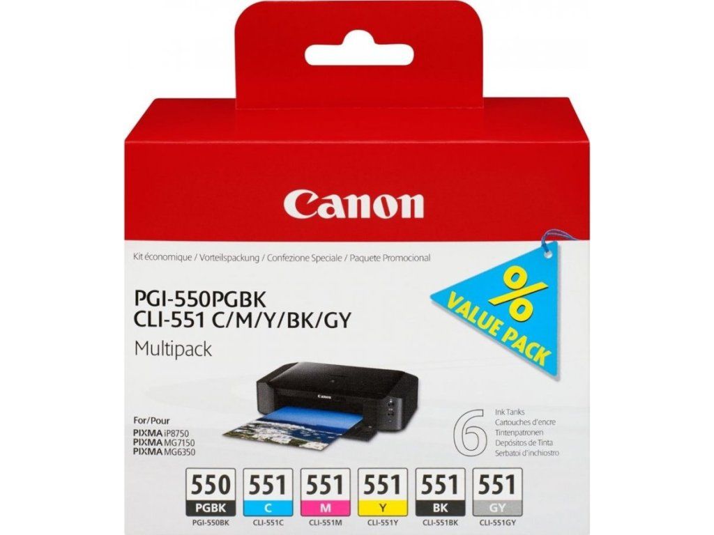 Canon cartridge multipack PGI-550 + CLI-551 (CMYBkGY, 19 000 str) pro Canon PIXMA iP8750, MG7150, MG6350