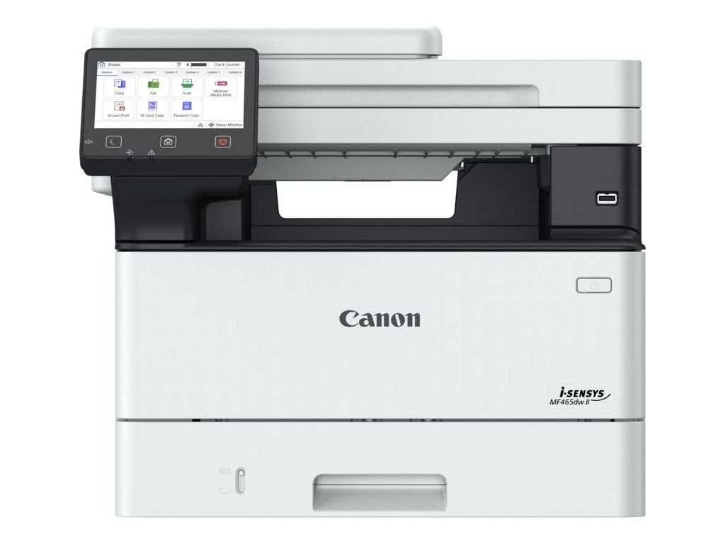 Multifunkční zařízení Canon i-SENSYS MF465dw II kombinuje rychlý černobílý laserový tisk až 40 str./min s pokročilými funkcemi kopírování, skenování a faxování. Vybaveno oboustranným automatickým podavačem dokumentů na 50 listů umožňuje efektivní zpracování vícestránkových dokumentů s rychlostí skenování až 100 obr./min v černobílém režimu.