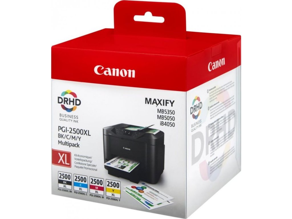 Náhradní čtyřbarevný multipack PGI-2500XL BK/C/M/Y je úplnou sadou zásobníků inkoustu pro barevné inkoustové tiskárny firmy Canon, konkrétně se jedná o model Canon MAXIFY MB5350. Jde o cenově dostupné výkonné multifunkční zařízení pro nejnáročnější prostředí malých kanceláří.