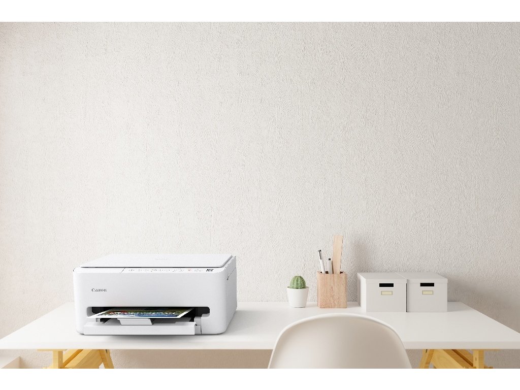 Díky efektivnímu a prostorově úspornému designu mohou být naše domácí tiskárny uloženy na policích nebo stolech, a není nutné, aby byly přístupné zezadu. Užijte si čistší a čitelnější výtisky díky inteligentnímu rozmístění bodů a optimalizaci inkoustu prostřednictvím našeho systému kazet FINE a aktualizovaného pigmentového černého inkoustu. Ať už tisknete jakkoli, užijte si bezproblémový provoz díky stabilnímu dvoupásmovému Wi-Fi připojení (2,4 GHz/ 5 GHz).