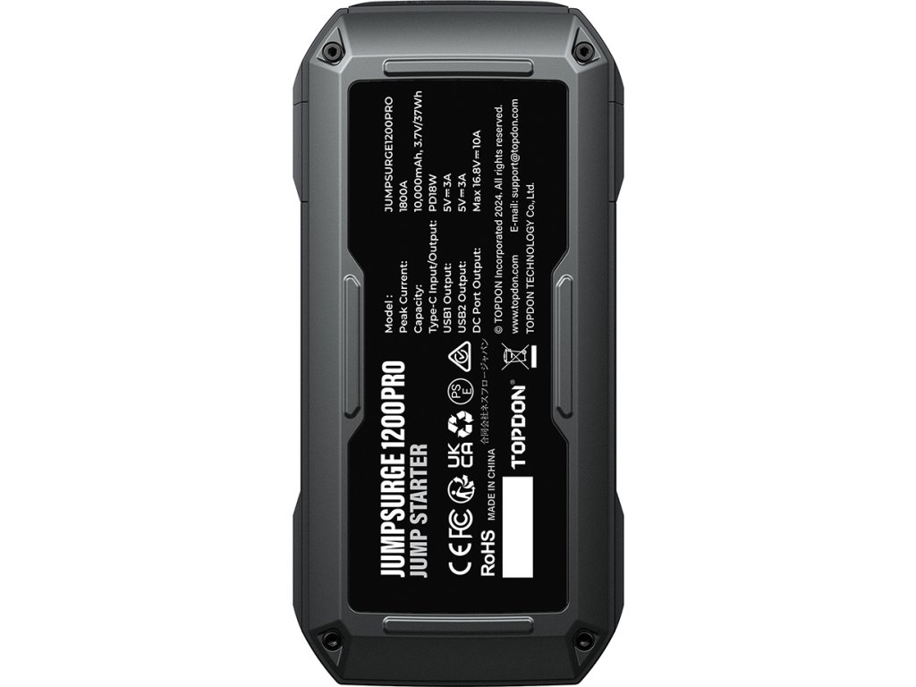 Maximálně spolehlivý a výkonný car jump startér JumpSurge 1200 PRO s kapacitou 3,7V, 10000mAh (37Wh) a špičkovým startovacím proudem až 1800A je ideální zařízení, které vám poslouží jako startovací zdroj pro vaše vozidla, lodě, motocykly, skútry. JumpSurge 1200 PRO vám umožní oživit baterii a nikdy nezůstat na cestách bez pomoci!