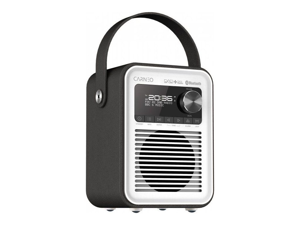 CARNEO D600 je kompaktní rádio s módním designem. Poslouchejte své oblíbené rozhlasové programy v pásmu FM nebo DAB+. Digitální tuner DAB+ přijímá signály z éteru čistě a bez šumu. Oblíbenou hudbu můžete poslouchat také bezdrátově prostřednictvím Bluetooth ze smartphonu nebo tabletu.