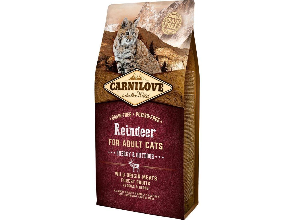 Krmivo bohaté na kvalitní bílkoviny s dostatečným obsahem aminokyselin, které dospělé kočce s možností pohybu venku dodá dostatek energie. Carnilove Reindeer for Adult Cats se sobím masem je navrženo s respektem k přirozené skladbě potravy koček. Sobí maso díky vysokému obsahu přírodních antioxidantů, nenasycených tuků a omega-3 mastných kyselin zajistí kočce doplnění energie po každém kočičím výletu. Lesní ovoce, zelenina a byliny pak doplní potřebné živiny, vitaminy, minerály a antioxidanty.
