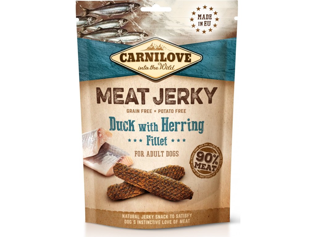 Přírodní masový pamlsek pro psy v podobě filetu ze sušeného krůtího, kachního a sleďového masa, který svou lahodnou chutí nadchne i ty nejmlsnější mazlíčky. Carnilove Jerky je pamlsek pro psy v podobě sušeného masa z krůty, kachny a sledě bez umělých dochucovadel, takže má dokonalou přirozenou chuť masa, kterou si váš pes zamiluje. Lze podávat jako pamlsek nebo jako odměnu při tréninku.