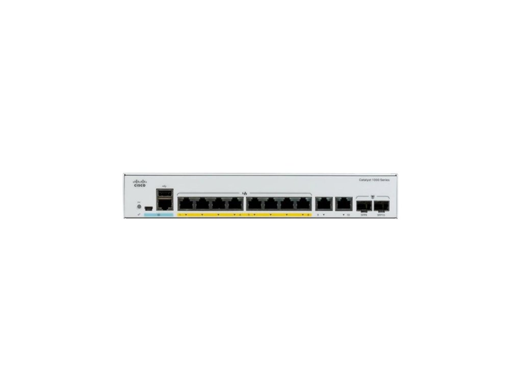 Catalyst C1000-8T-2G-L, 8x 10/100/1000 Ethernet ports, 2x 1G SFP and RJ-45 combo uplinks