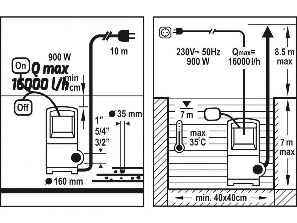 Ponorné čerpadlo pro čistou i kalnou vodu o výkonu 900W.