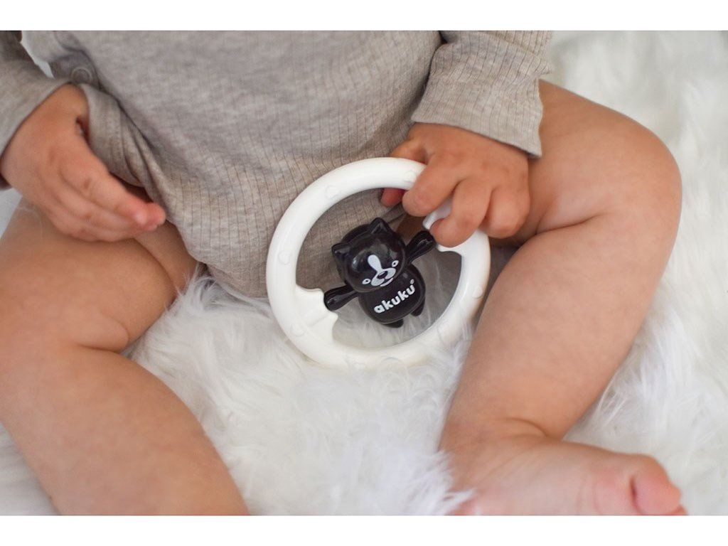 Černobílé dětské chrastítko je díky svému tvaru a kombinaci barev u dětí velmi oblíbené a stimuluje rozvoj jejich koordinace a smyslů. Je vyrobeno z vysoce kvalitních, bezpečných a odolných materiálů. Nemá žádné ostré hrany a neobsahuje bisfenol A (0% BPA).