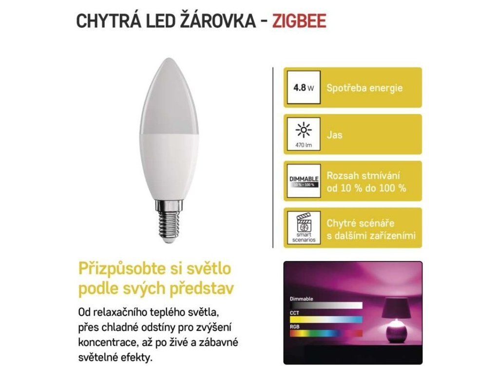 Chytrá LED žárovka GoSmart svíčka / E14 / 4,8 W (40 W) / 470lm / RGB / stmívatelná /Zigbee