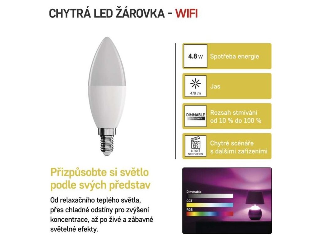 Chytrá LED žárovka GoSmart svíčka / E14 / 4,8 W (40 W) / 470lm / RGB / stmívatelná / WiFi