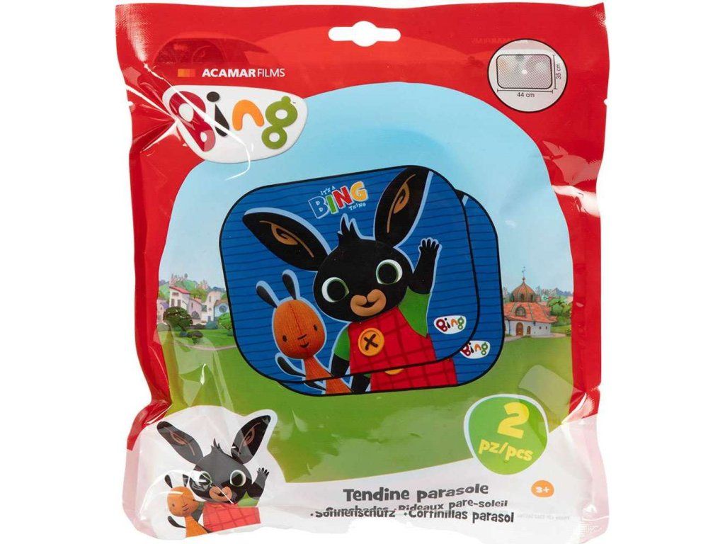 Praktická pomůcka do auta - sluneční clony na okna. Stínítka omezují pronikání slunečních paprsků, díky čemuž nedochází ke zvyšování teploty v autě. Stínidla jsou vybavena praktickou přísavkou a lze je snadno složit do malých rozměrů. Veselé barvy a obrázky s motivem Bing zpříjemní Vašemu dítěti cestování. Rozměry 44x35 cm, sedí na přední i zadní okna. Balení obsahuje 2 ks. Licenční produkt.