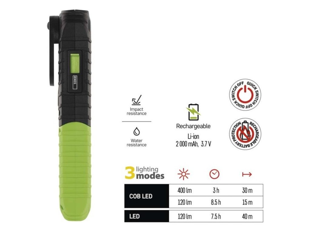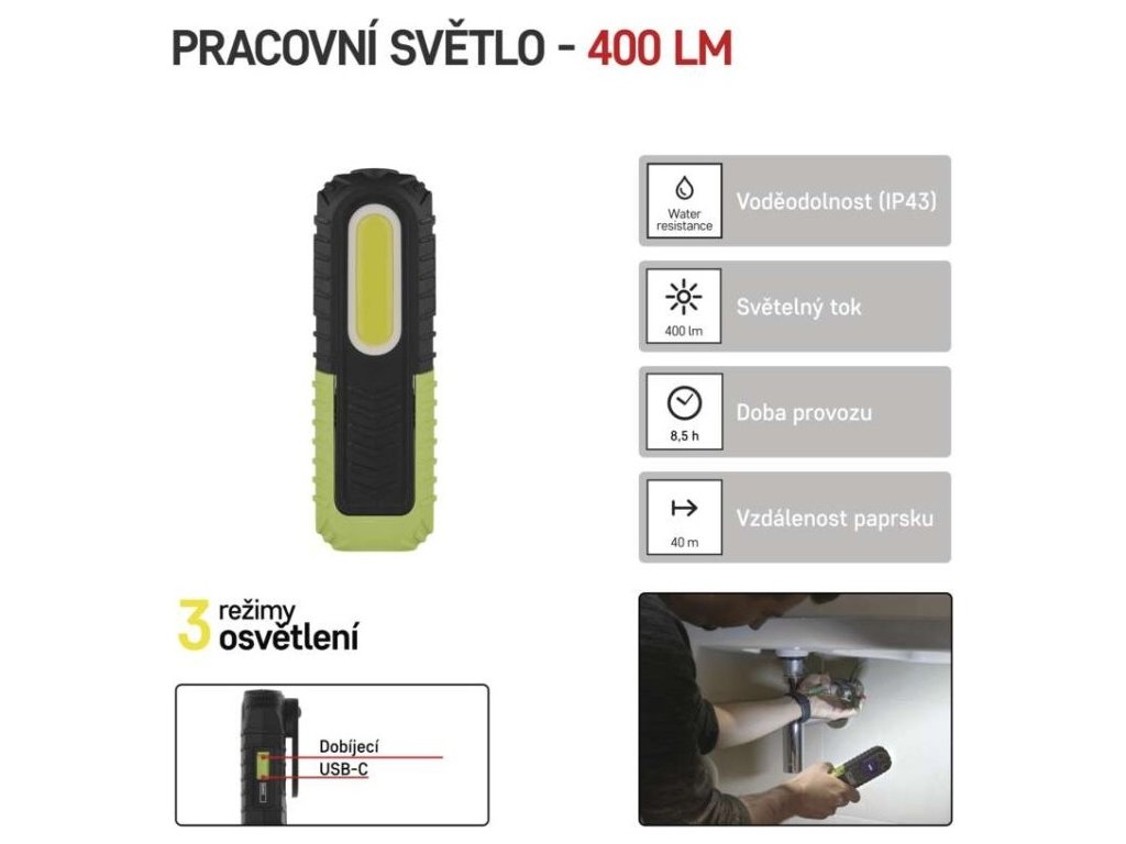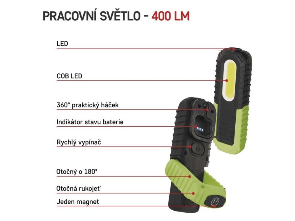 COB LED + LED nabíjecí prac. svítilna P4531, 400 lm, 2000 mAh