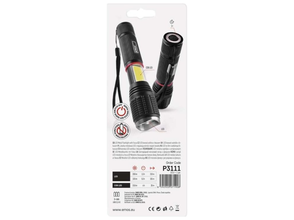 COB LED + LED ruční svítilna P3111, 230 lm, 3× AAA, fokus