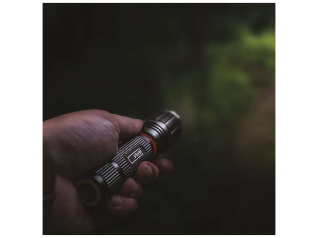dosvit : 5 W LED 100 % – 210 m, 5 W LED 50 % – 155 m, 3 W COB LED – 20 m