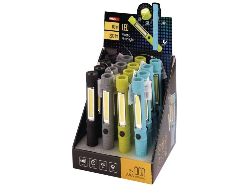 COB LED + LED ruční svítilna P3897, 230 lm, 3× AAA, 16 ks, display box