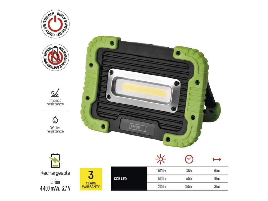 COB LED nabíjecí pracovní reflektor P4533, 1000 lm, 4400 mAh