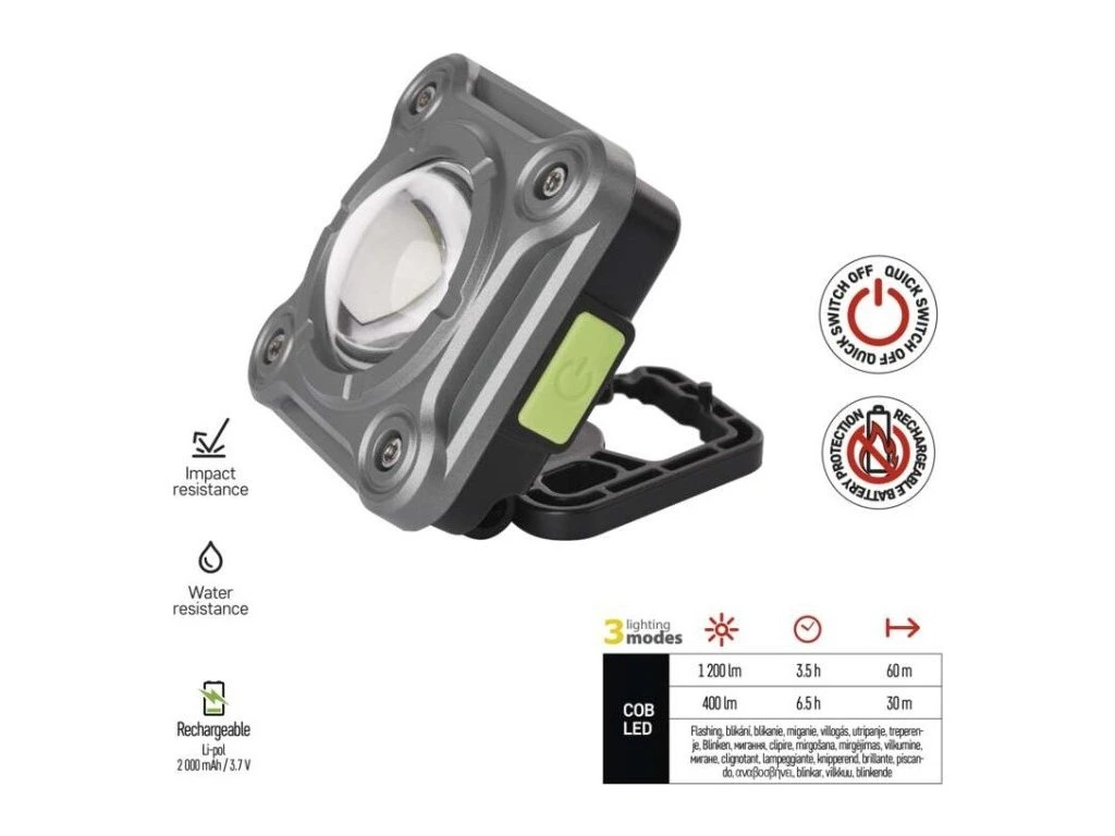 COB LED nabíjecí pracovní reflektor P4543, 1200 lm, 2000 mAh