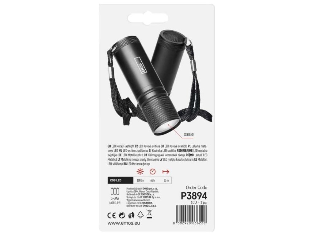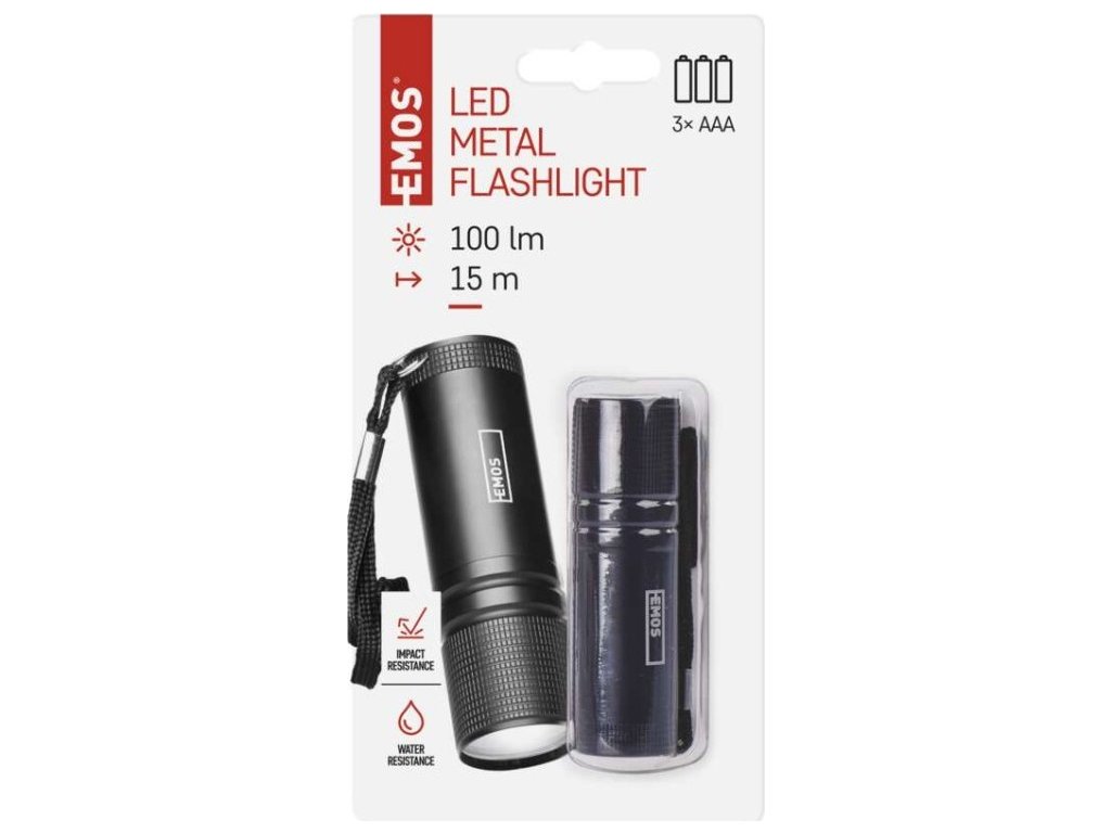 COB LED ruční kovová svítilna P3894, 100 lm, 3× AAA