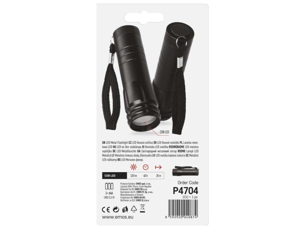 COB LED ruční kovová svítilna P4704, 100 lm, 3× AAA