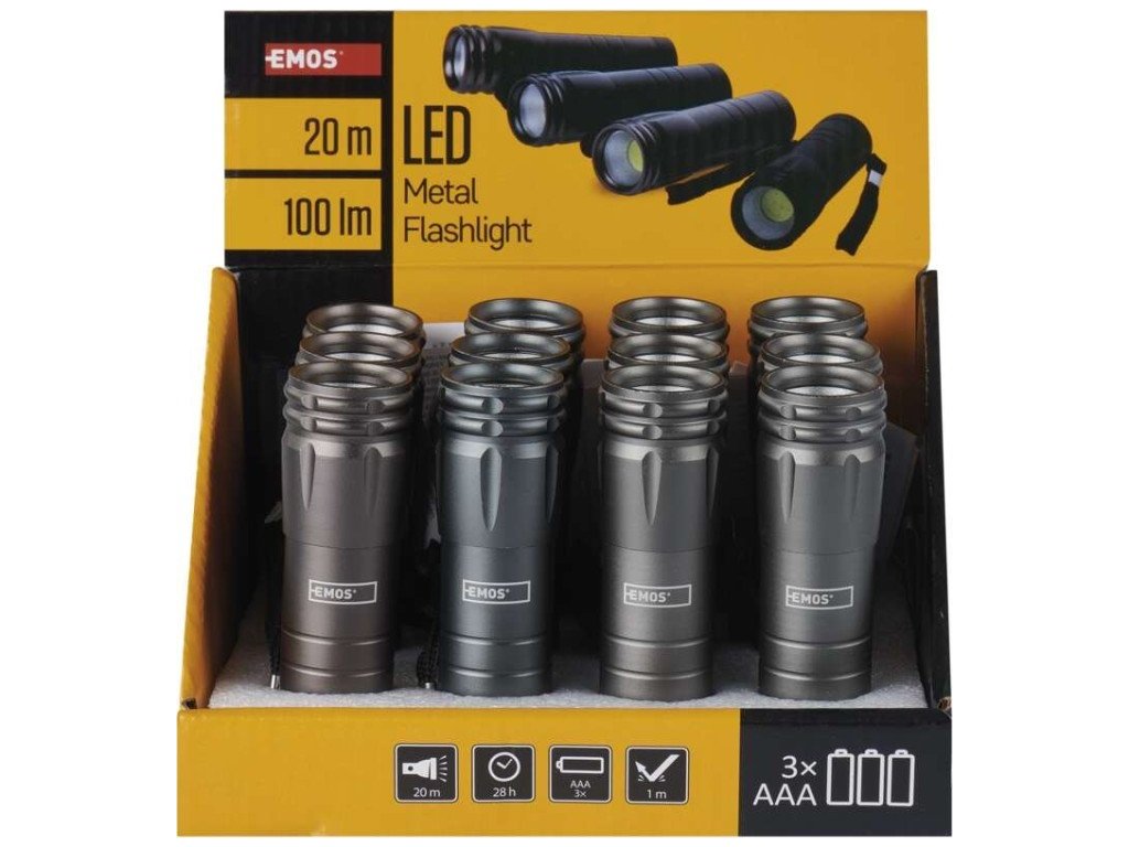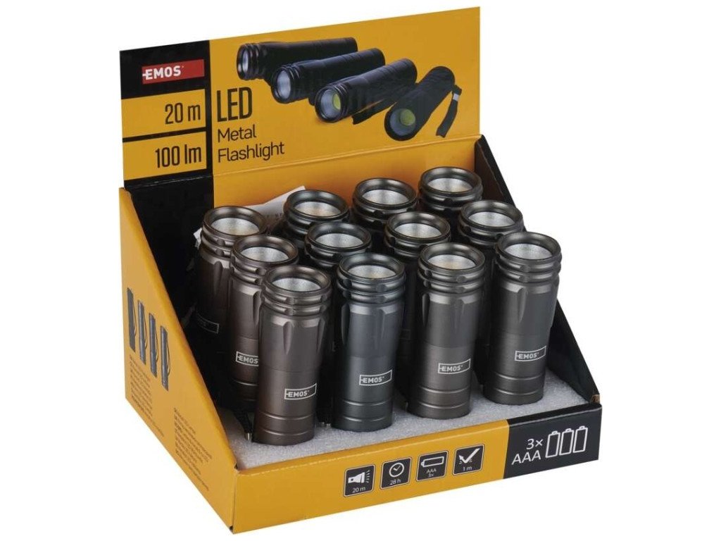 COB LED ruční kovová svítilna P4705, 100 lm, 3× AAA, 12 ks, display box