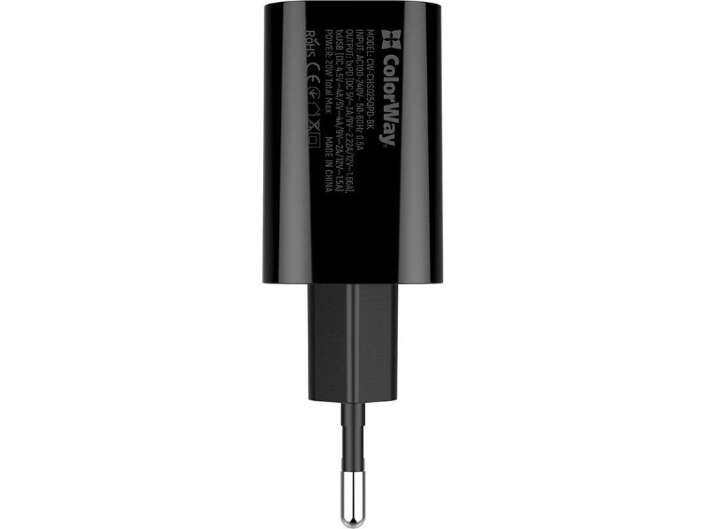 COLORWAY 1x USB a 1x USB-C/ síťová nabíječka/ 20W/ 100V-240V/ Černá