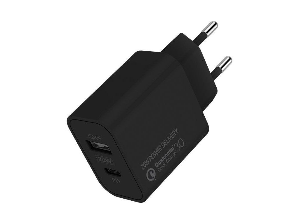 ColorWay napájecí adaptér USB a USB-C 20 WSíťový adaptér s výstupem 1x USB typ A a 1x USB typ C, podporou Quick Charge 3.0 a výstupním výkonem 20 W.