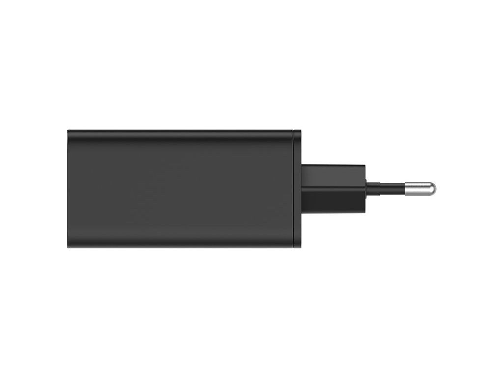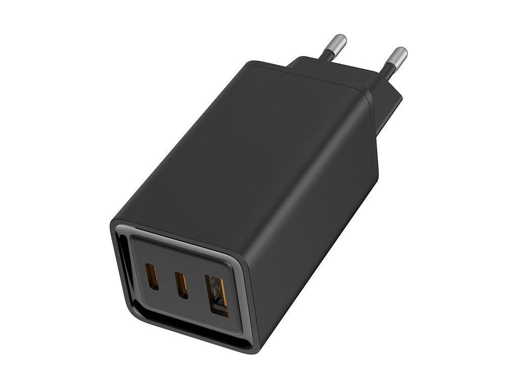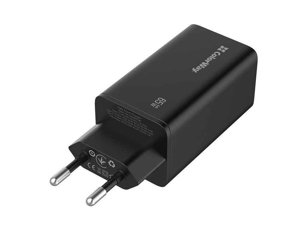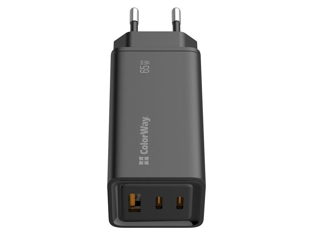 ColorWay CW-CHS039PD-BKUniverzální napájecí adaptér s výkonem 65 W. Pro nabíjení zařízení jsou k dispozici konektory USB a 2× USB-C. Použitá GaN technologie snižuje tvorbu tepla, čímž zvyšuje účinnost nabíječky při zachování kompaktních rozměrů. Samozřejmostí je ochrana proti přehřátí a přepětí. Technologie Auto ID určuje typ připojeného zařízení a zajišťuje správný nabíjecí proud. Podporuje protokoly PD 2.0 & 3.0 PPS 65 W, Xiaomi turbo charge 27 W, Apple Fast Charge, Huawei SCP/FCP, Quick Charge 2.0/3.0/4.0+ a Samsung SFC/AFC. Díky vyššímu výstupnímu napětí a výkonu umožňuje dobíjet také vybrané notebooky s USB-C portem a podporou Power Delivery.