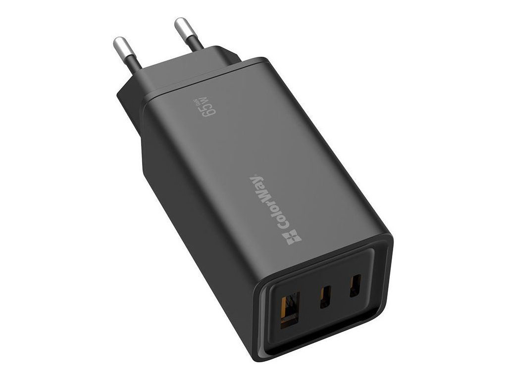 COLORWAY 1x USB a 2x USB-C/ turbo síťová nabíječka/ 65W/ 100V-240V/ Černá