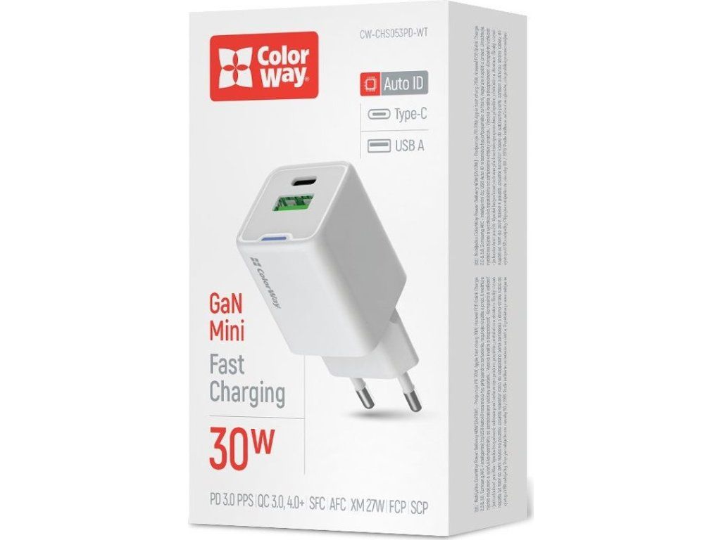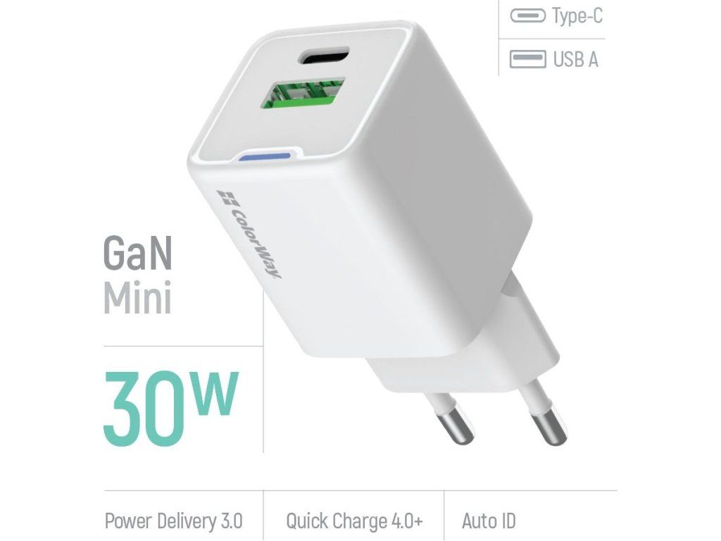COLORWAY 1x USB-C/ síťová nabíječka/ GaN/ PD/ PPS/ QC/ 30W/ Bílá