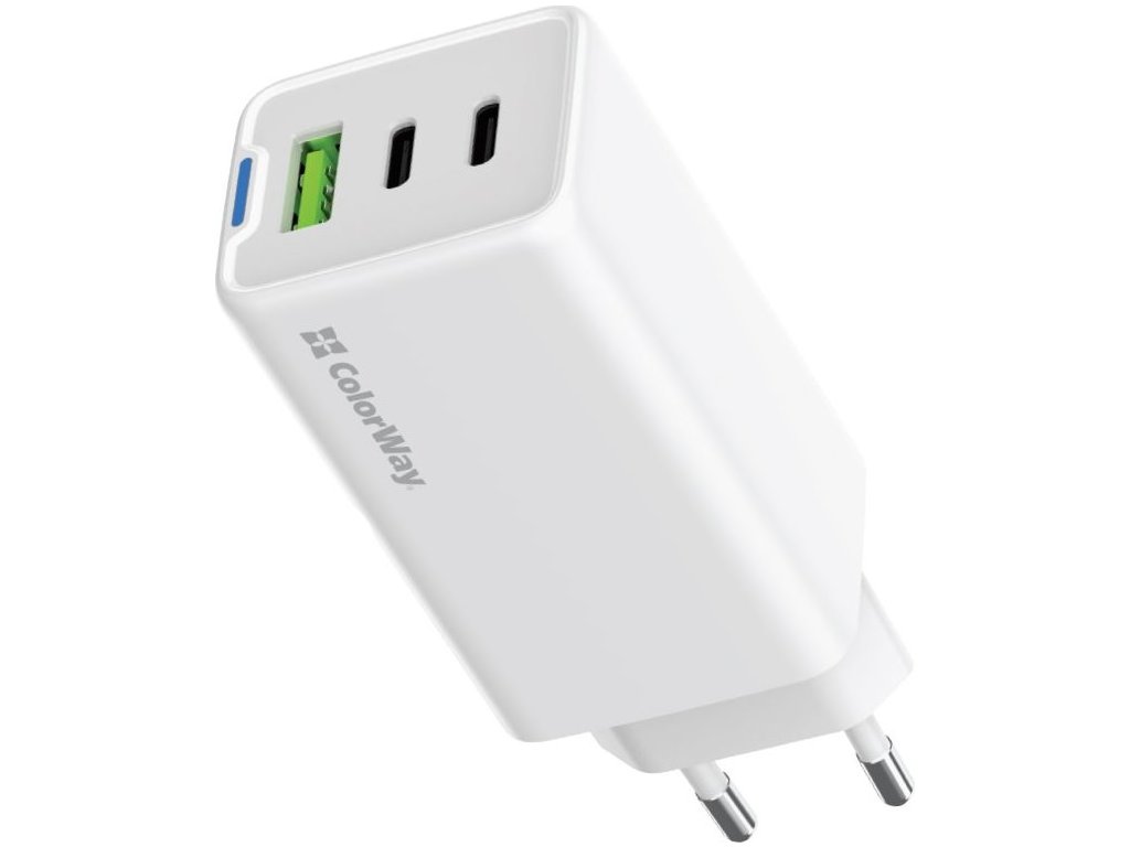 COLORWAY 2x USB-C, 1x USB-A/ síťová nabíječka/ GaN/ PD/ PPS/ 65W/ Bílá