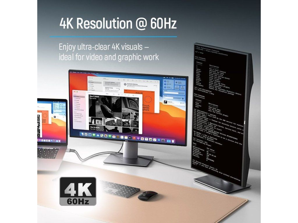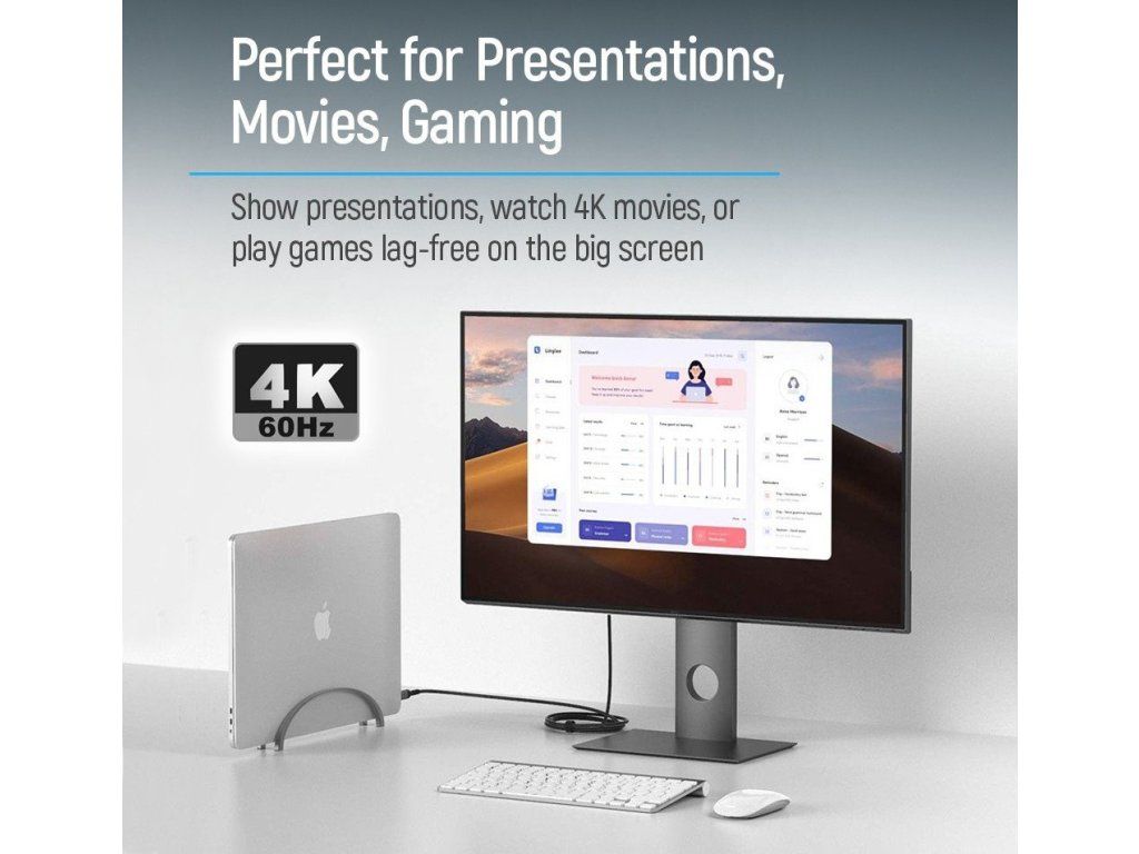 Adaptér podporuje přenos 4K Ultra HD signálu při frekvenci 60 Hz, což zajišťuje krystalicky čistý obraz bez zpoždění nebo ztráty kvality. Ideální pro profesionální prezentace i domácí zábavu.