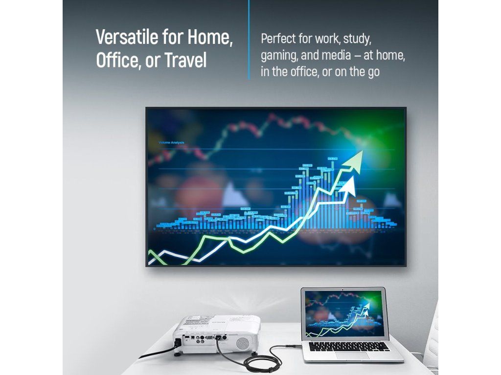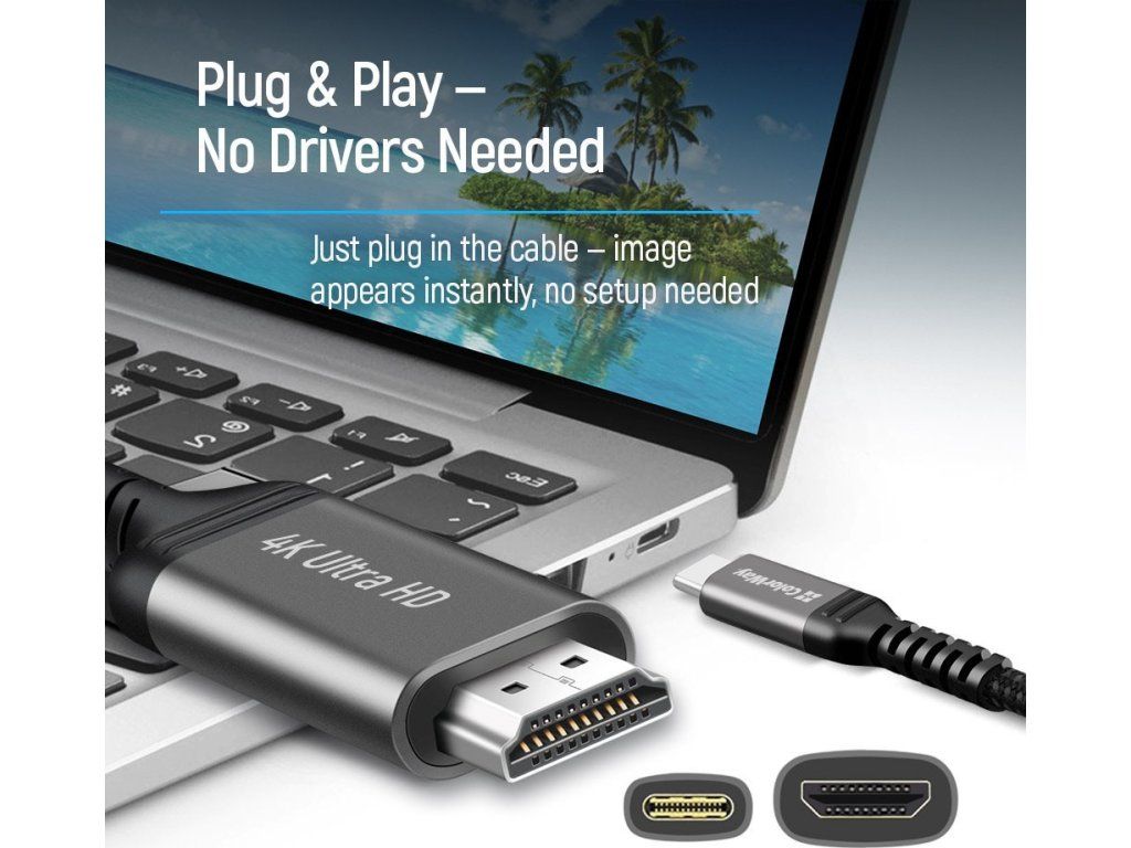 Tento kvalitní kabel umožňuje jednoduché propojení notebooků, tabletů nebo smartphonů s USB-C portem k monitorům, televizorům nebo projektorům vybaveným HDMI vstupem. Ideální řešení pro sledování filmů ve vysoké kvalitě, prezentace, práci nebo hraní her na velkém displeji.