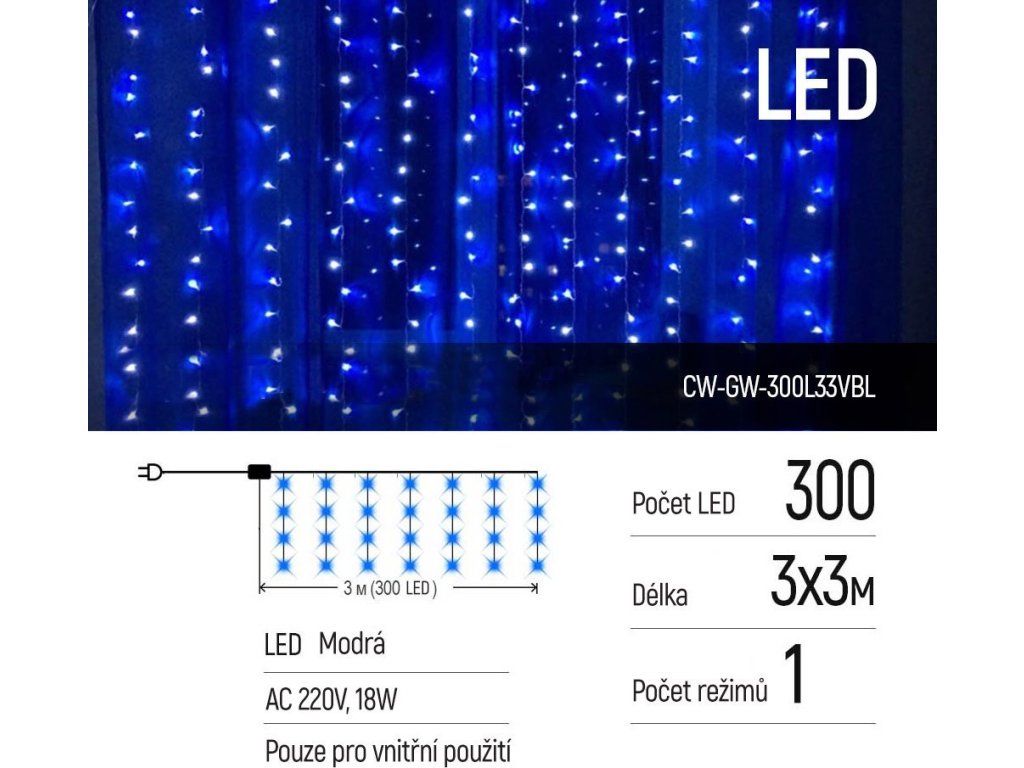COLORWAY LED girlanda/ vnitřní / 300 LED / délka 3 x 3m / modrá/ AC 220V
