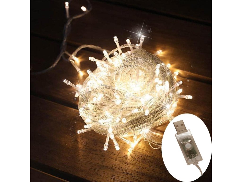 COLORWAY LED řetěz/ vnitřní / 100 LED / délka 10m / teplá bílá/ 8 funkcí/ napájení USB