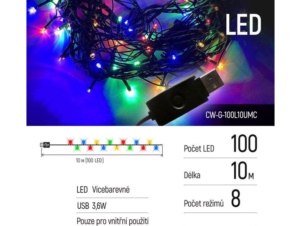 COLORWAY LED řetěz/ vnitřní / 100 LED / délka 10m / více barevný/ 8 funkcí/ napájení USB