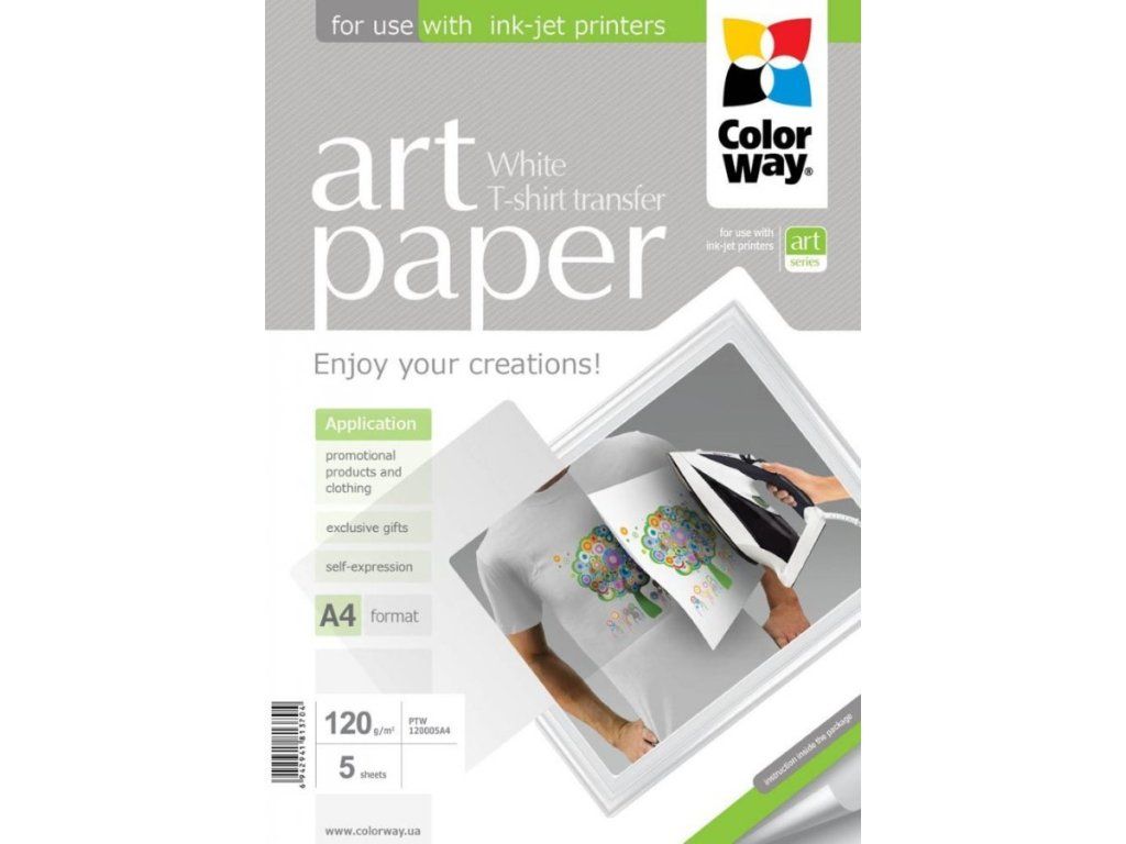 ColorWay Art Paper 5 ksSpeciální papír pro inkoustový tisk, který umožňuje přenést vytištěné obrázky na světlý bavlněný textil pomocí žehličky nebo termolisu. K tisku se doporučuje použít pigmentový inkoust.