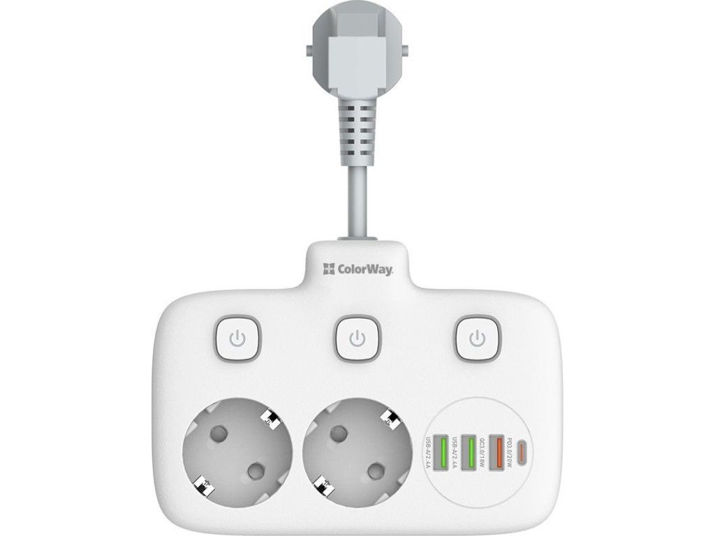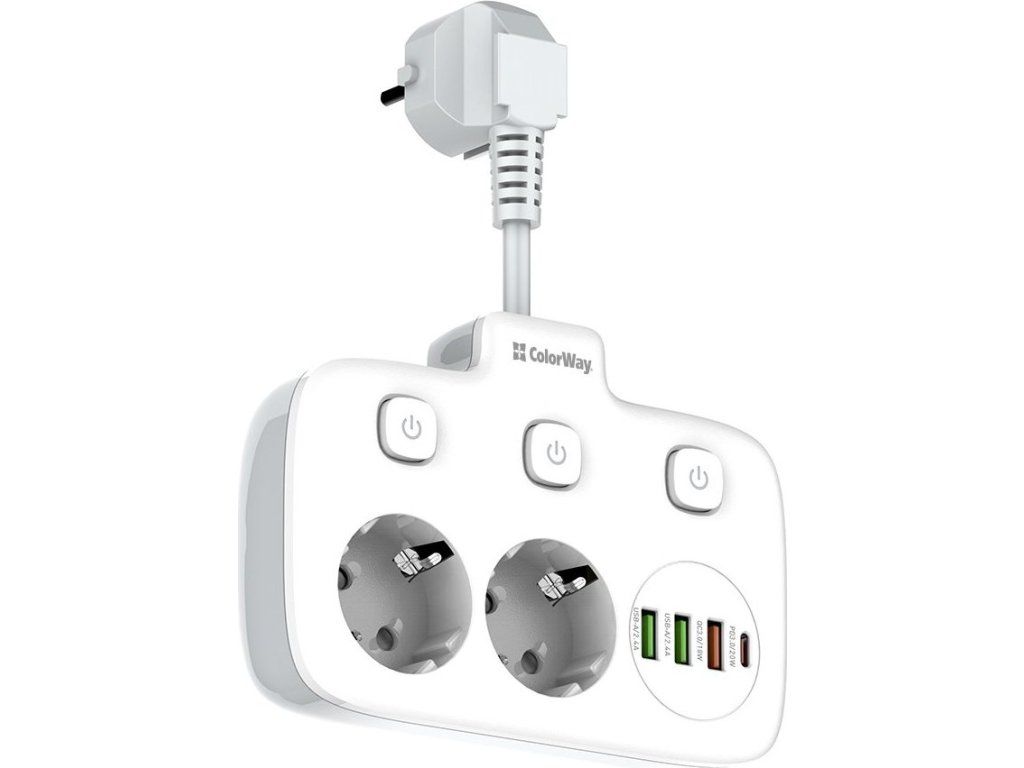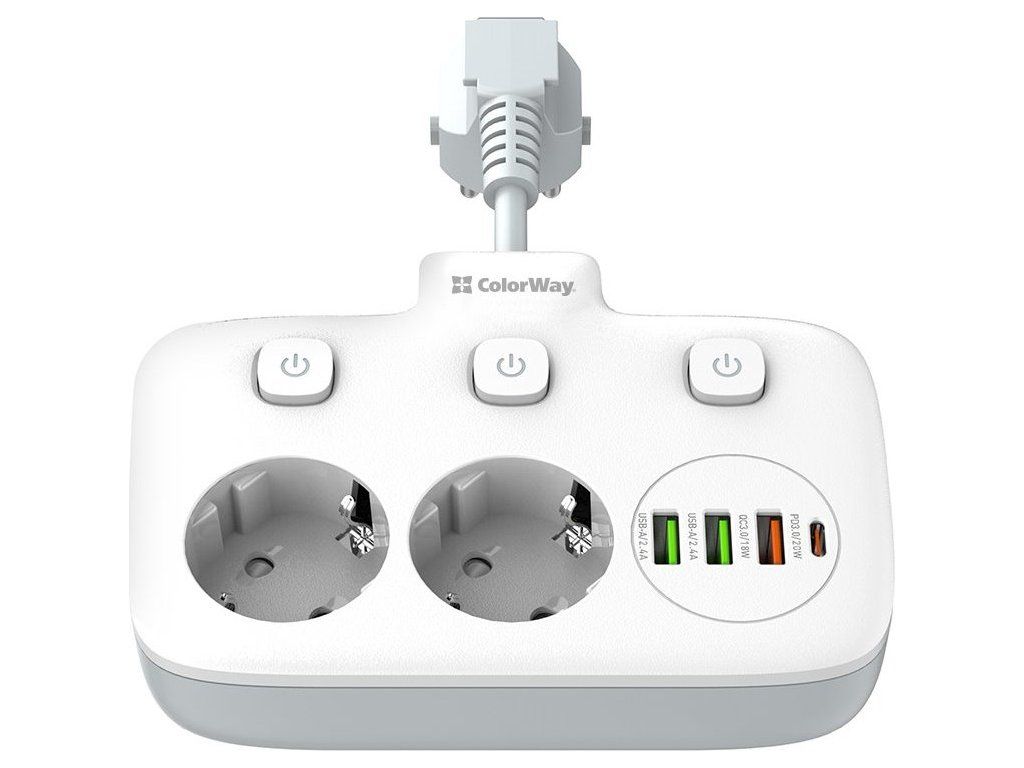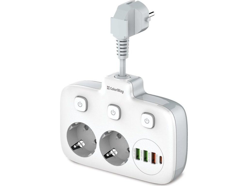 COLORWAY Prodlužovací napájecí přívod/ 2x Schuko/ 3x USB-A/ 1x USB-C / kabel 2,5cm