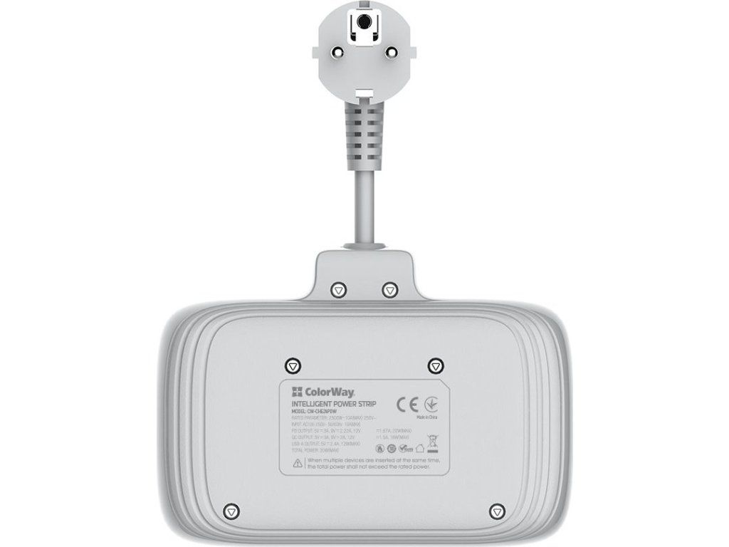ColorWay CW-CHE24PDWKompaktní prodlužovací přívod se dvěma Schuko zásuvkami, třemi USB porty a jedním USB-C konektorem. Lze s ním tedy připojit nejen elektrické spotřebiče, ale současně nabíjet až čtyři mobilní zařízení z USB portů. Funkce Auto ID automaticky rozpozná typ připojeného zařízení a určí tak vhodný nabíjecí proud. Mezi podporované nabíjecí protokoly patří PD 2.0/3.0 PPS, Quick Charge 2.0/3.0, Apple Fast Charge, Huawei FCP, Samsung SFC/AFC a Xiaomi Turbo charge. Zásuvky a USB výstupy jsou vybaveny praktickým tlačítkem pro zapnutí a vypnutí. Tělo přívodu je vyrobeno ze žáruvzdorného plastu, který odolá teplotám až do 850 °C. Samozřejmostí je uzemnění a přepěťová ochrana.