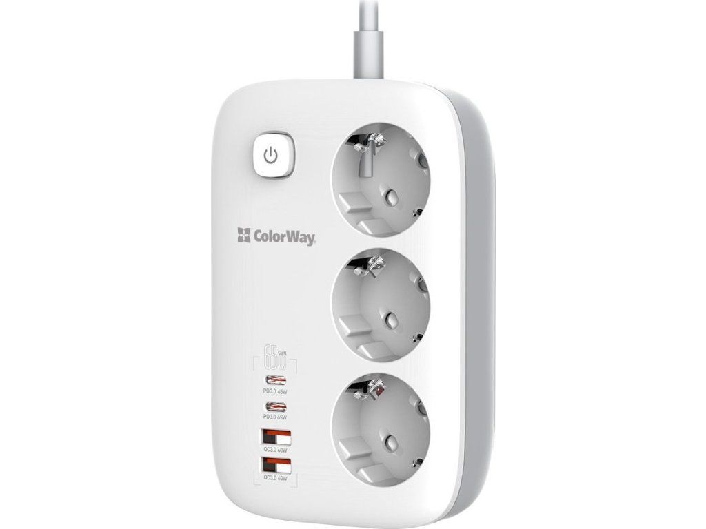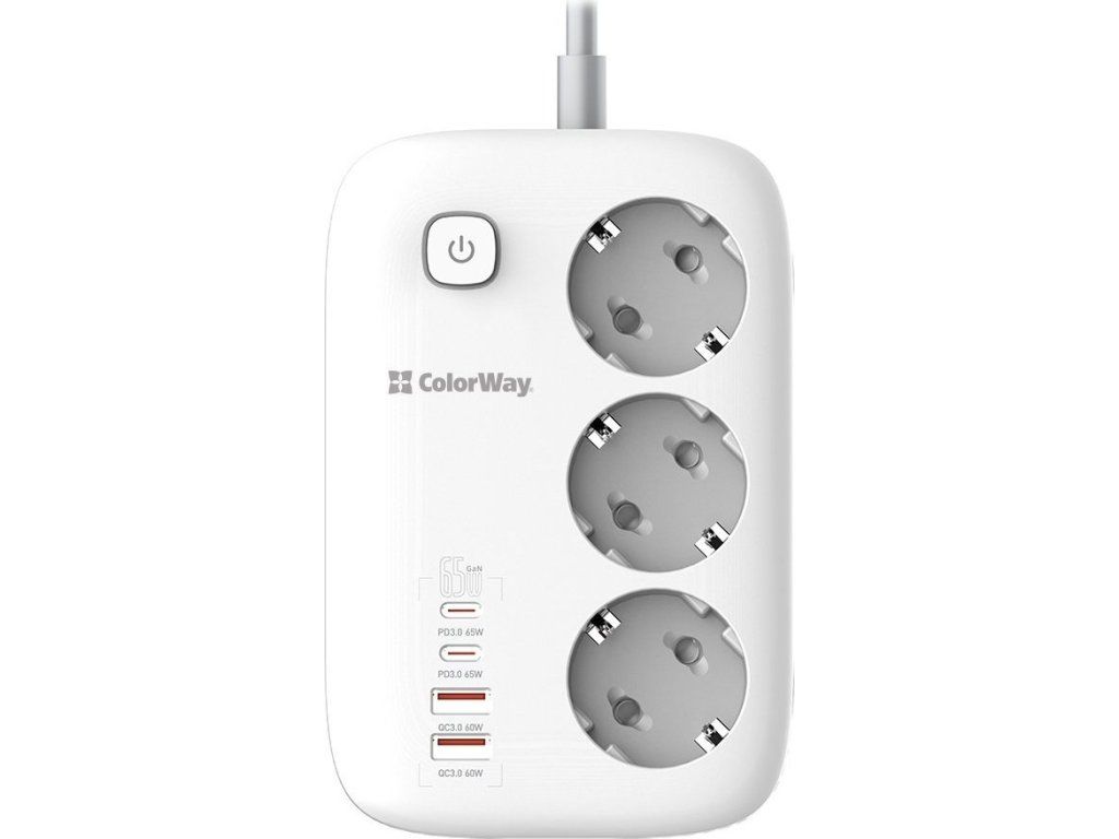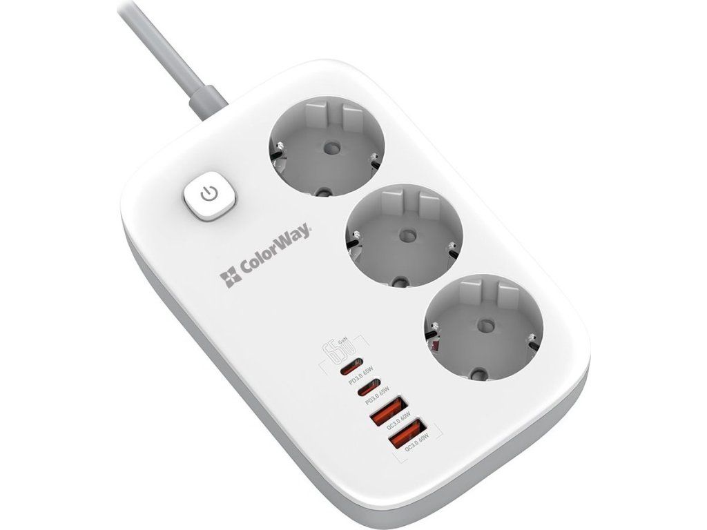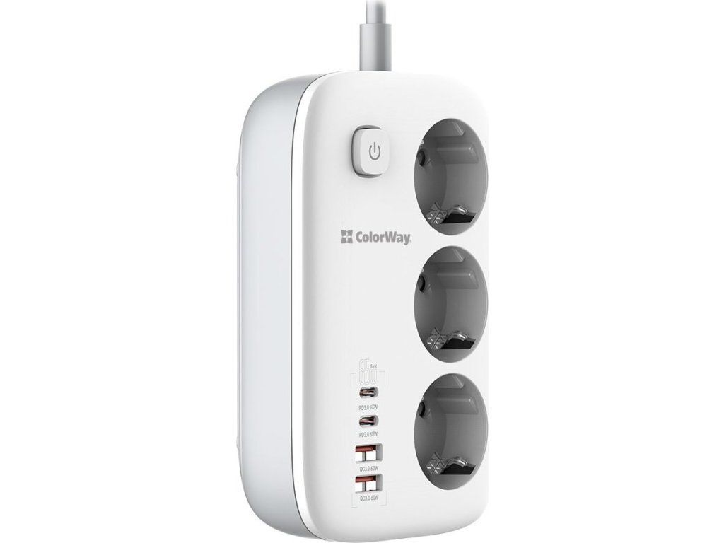COLORWAY Prodlužovací napájecí přívod/ 3x Schuko/ 2x USB-A 60W/ 2x USB-C 65W/ kabel 2m