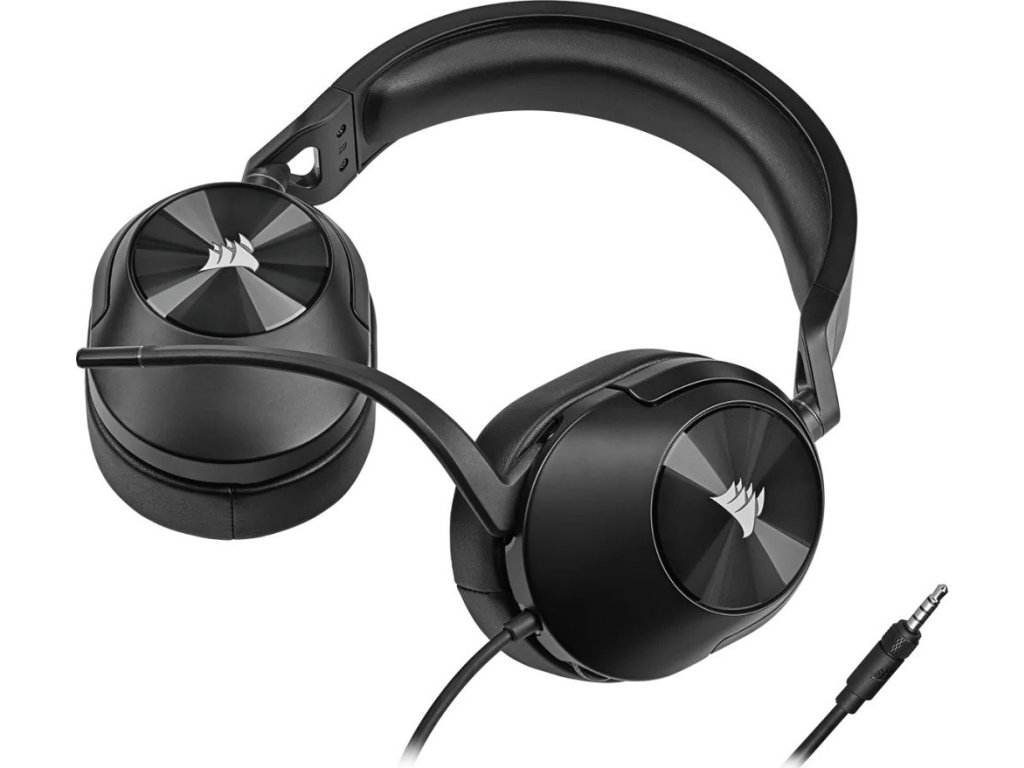 Herní headset CORSAIR HS55 STEREO poskytuje nezbytné celodenní pohodlí a kvalitní zvuk díky koženkovým náušníkům z paměťové pěny a lehké konstrukci.