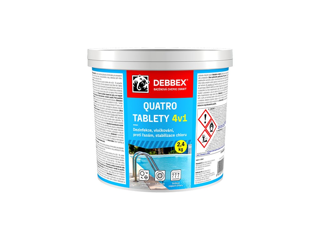 Moderní dezinfekční víceúčelový přípravek, který likviduje bakterie a řasy, umožňuje vyvločkování nečistot a stabilizuje aktivní chlór.