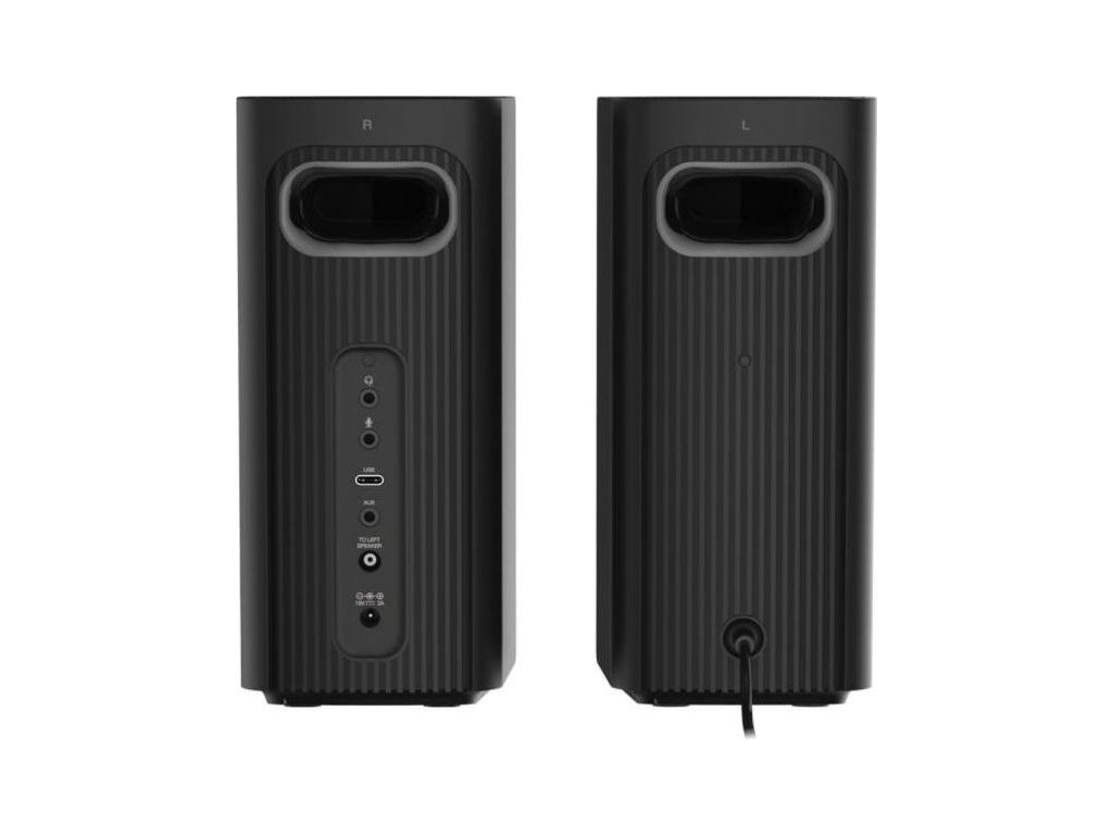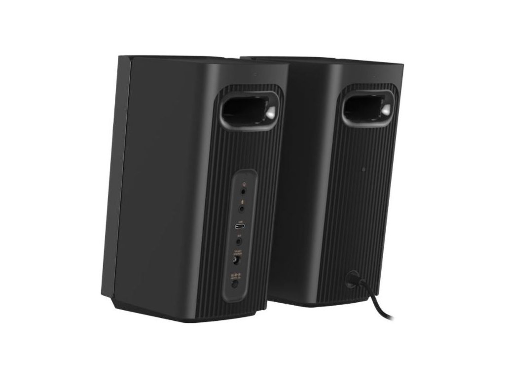 Reproduktorový systém Creative T60 především nabízí celou škálu možností připojení. Kromě zvuku USB-C pro herní konzole obsahuje integrované konektory pro připojení sluchátek a mikrofon, když se potřebujete zúčastnit online pracovního hovoru. Dále je tu praktické a snadno přístupné tlačítko pro přepínání reproduktorů a sluchátek. Nejvyšší čas posunout úroveň výchozího počítačového zvuku někam dál.