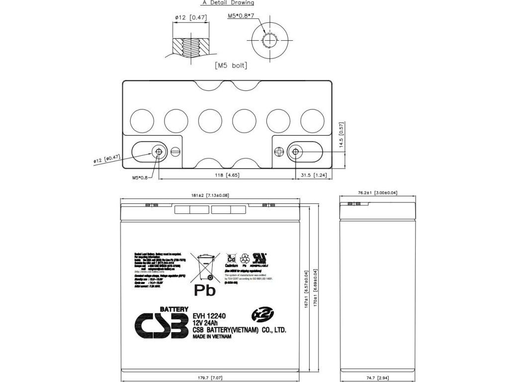 CSB Pb záložní akumulátor VRLA AGM 12V/24Ah 6-DZM-20 (EVH12240)