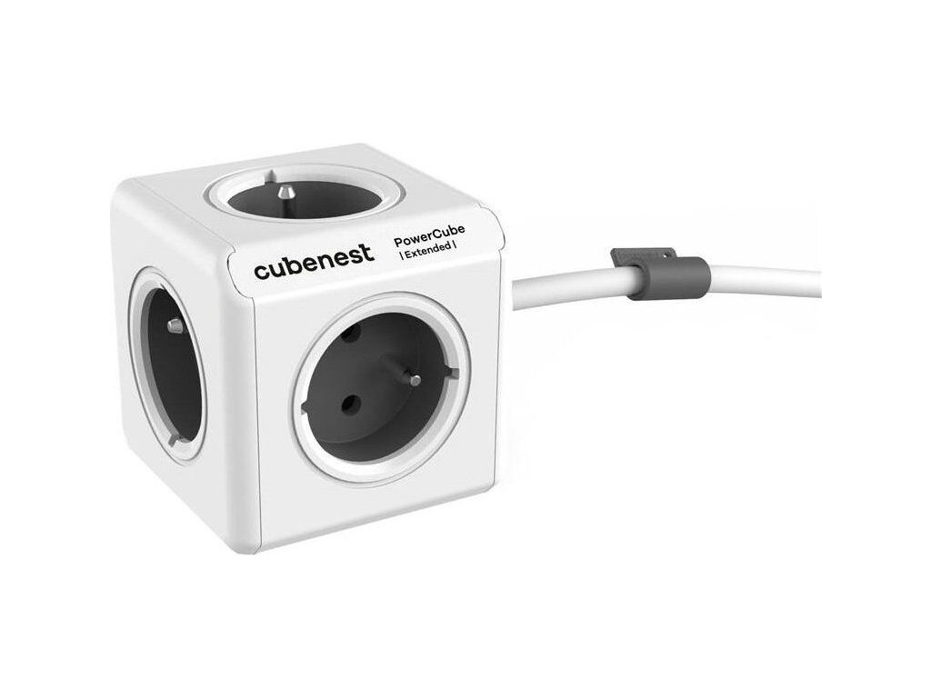 Cubenest Powercube Extended, 5× zásuvka, 1,5 m, bílá/šedá, dětská pojistka, uzemnění, dok, max. 10A/250V~2500W