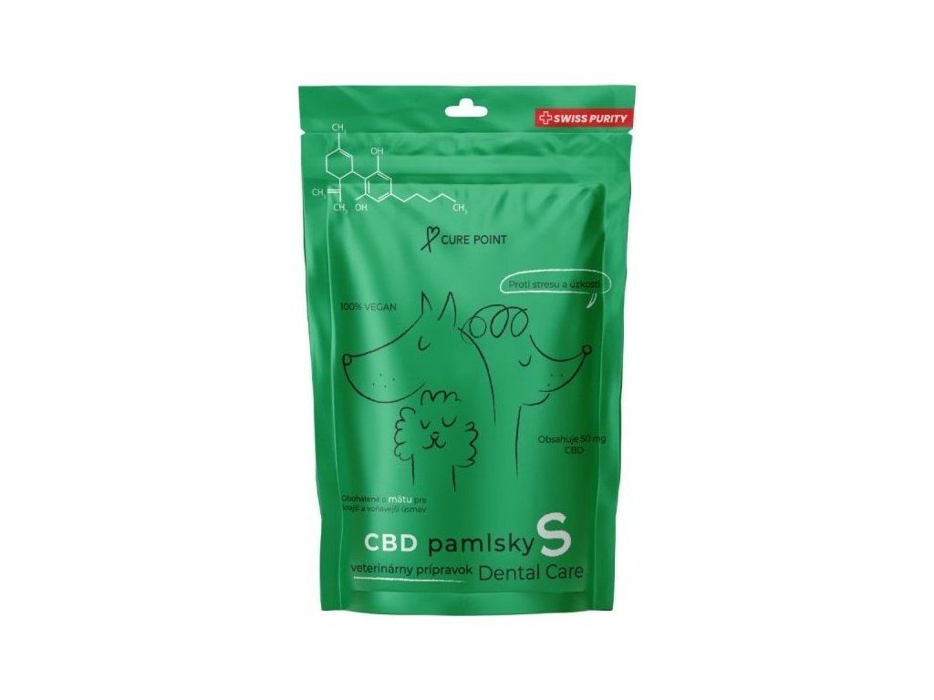 Doplňkové chutné pamlsky pro psy malých plemen (do 10 kg) zlepšující vitalitu a zdraví vašeho miláčka. Krmivo je vyrobeno z prémiových surovin s cílem maximalizovat blahodárný efekt výrobku. Klíčovou přísadou je máta, která má významné protizánětlivé účinky. Výrobek je 100% veganský a díky svému složení napomáhá dentální hygieně a svěžímu dechu vašeho pejska. Výrobek je také určen k předcházení a zmírňování trávicích potíží, bolestí břicha a nevolnosti. Díky účinné látce CBD krmivo působí antistresově a relaxačně. I proto může významně pomoci při stresových situacích (např. ohňostroje, bouře, cesta autem) vašeho čtyřnohého miláčka. Pamlsky mají výbornou chuť, díky které je mají pejsky velmi rádi. Krmivo je zároveň na Slovensku a v České republice registrováno jako veterinární přípravek.