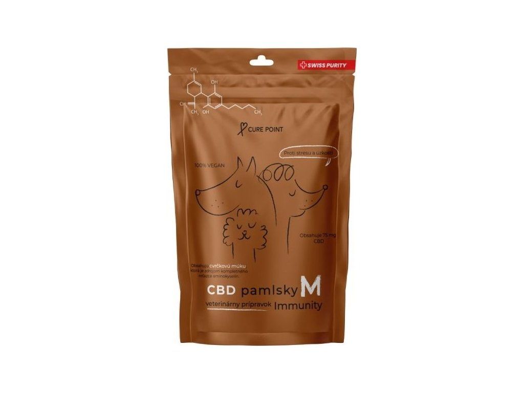 Doplňkové chutné pamlsky pro psy středních plemen (10 - 35 kg) zlepšující vitalitu a zdraví vašeho miláčka. Krmivo je vyrobeno z prémiových surovin s cílem maximalizovat blahodárný efekt výrobku. Klíčovou přísadou je cvrčková mouka, která je bohatým zdrojem kompletní řady aminokyselin. Výrobek je 100% veganský a díky svému složení posiluje imunitu vašeho pejska. Výrobek je také vhodným zdrojem energie při fyzicky náročných situacích. Díky účinné látce CBD krmivo působí antistresově a relaxačně. I proto může významně pomoci při stresových situacích (např. ohňostroje, bouře, cesta autem) vašeho čtyřnohého miláčka. Pamlsky mají výbornou chuť, díky které je mají pejsky velmi rádi. Krmivo je zároveň na Slovensku a v České republice registrováno jako veterinární přípravek. Výrobek je schválen na Slovensku a v České republice pod registračním číslem 186/R/22-S a 148-23/C.