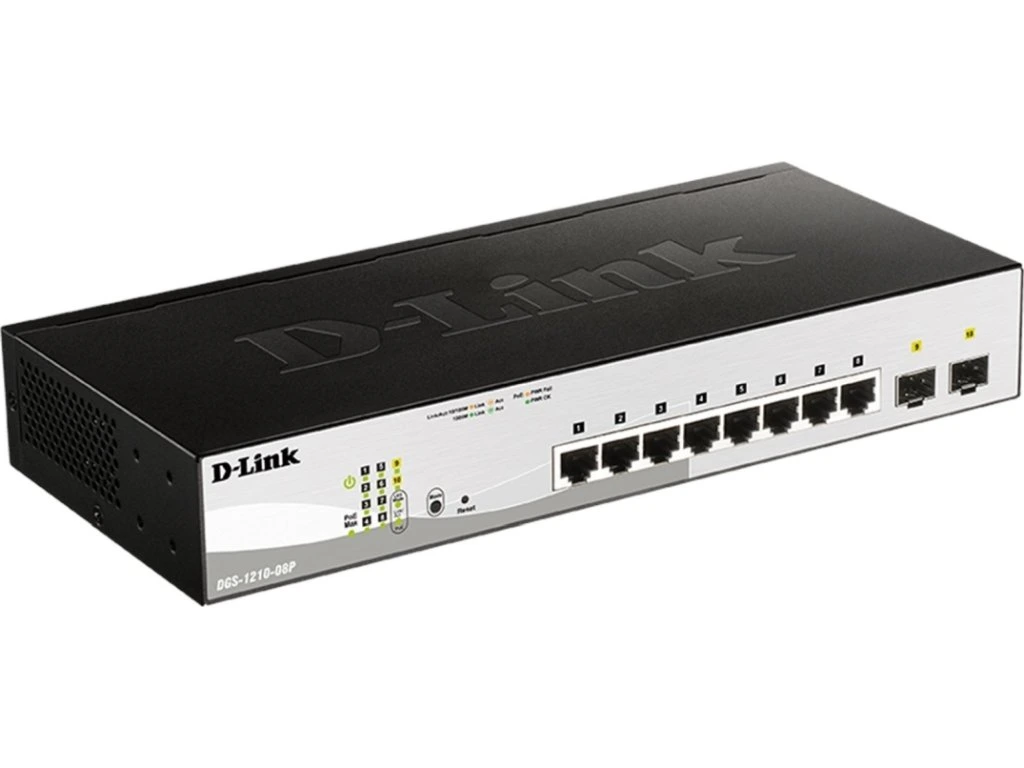 D-Link DGS-1210-08P Smart PoE switch, 8x GbE PoE+, 2x SFP, PoE 65W, fanless