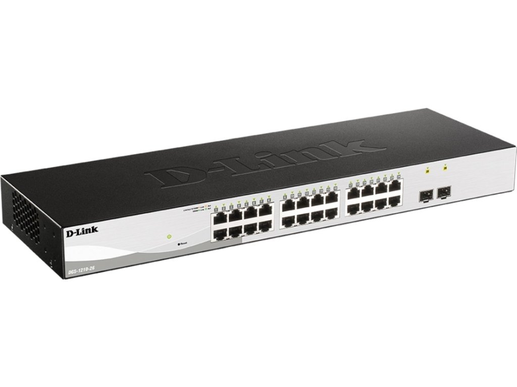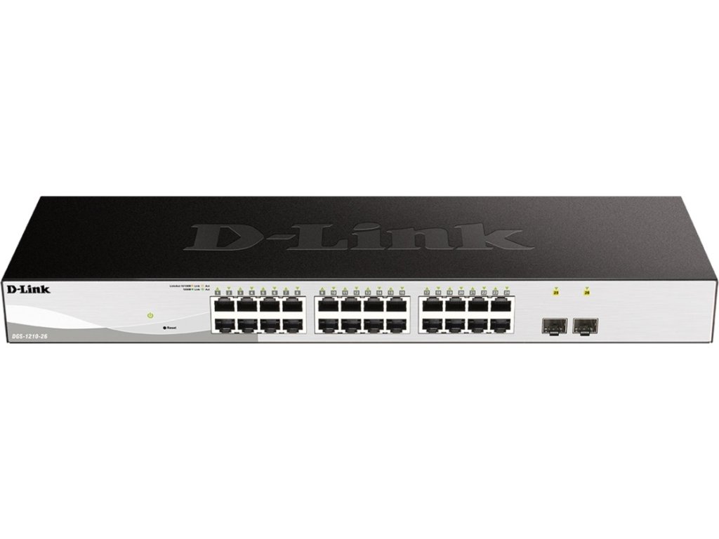D-Link DGS-1210-26 je výkonný 26-portový Gigabit Ehernet Smart Managed switch bez větráků, vhodný pro přístupové Enterprise sítě a pro SMB. Je osazený 24 porty 10/100/1000M RJ-45 a dvěma 100/1000M SFP sloty s podporou 100M SFP a Gigabit SFP transceiverů. Správa přepínače je z intuitivního webového rozhraní nebo pomocí SNMP příkazů. K dispozici je také bezplatná utilita D-Link Network Assistant (DNA) a centrální NMS plaforma D-View7. Kompaktní sada Telnet CLI příkazů umožňuje základní nastavení přepínače (nastavení IP adresy, hesla, reset, reboot, ping, upgrade FW, nahrání/zálohování konfigurace, show, debug).